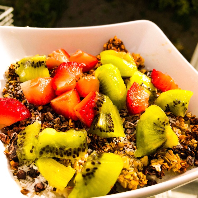 Ajoutez sur le dessus les fruits de saison, et vous pouvez ajouter du sucre ou du miel selon vos envies !